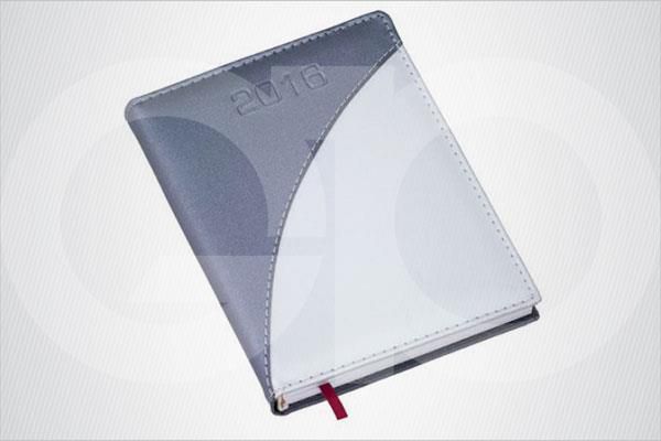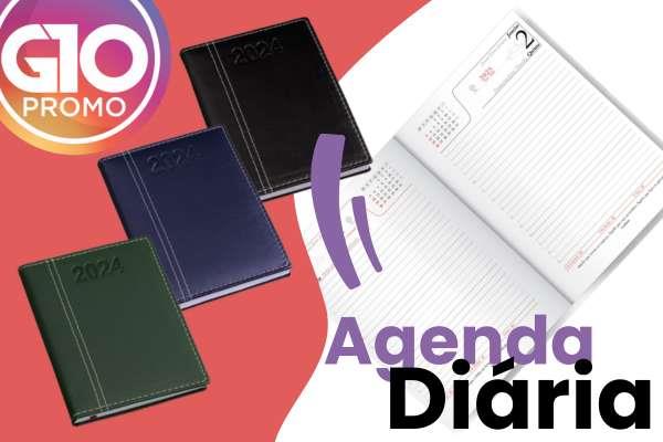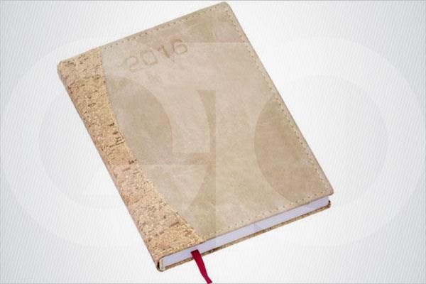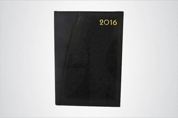 Agenda diária com capa de couro sintético, com relevo de 2016.