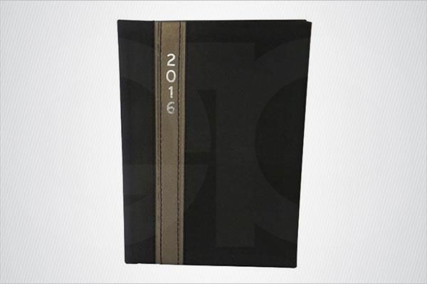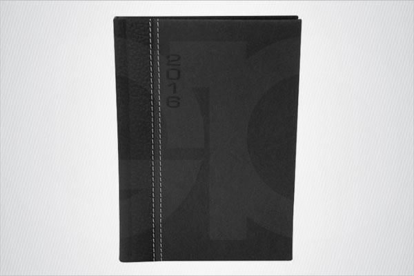Agenda diária com capa de couro sintético, com baixo relevo de 2016.