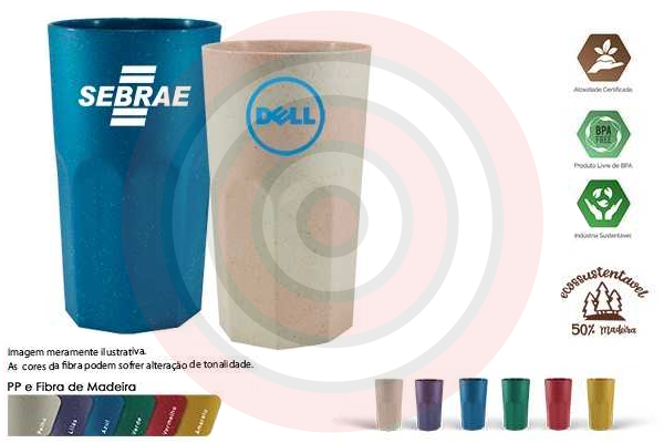 Copo Roma Green Colors, Capacidade para 380 ml. Copo sustentável feito com 50% de fibra de madeira e 50% de PP, reduzindo a quantidade de plástico e reaproveitando resíduos renováveis. Cores inovadoras, design moderno e acabamento impecável, feito em material atóxico e resistente ao micro-ondas e máquina de lavar. Cores disponíveis: Amarelo, Azul, Bege, Roxo, Verde, Vermelho. Gravação em 1 cor já incluso.