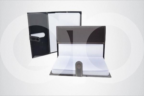 Bloco de anotações estilo Caderneta em couro sintético, disponível nas cores: Preto e Marrom (verificar disponibilidade das cores). Uma gravação já inclusa.