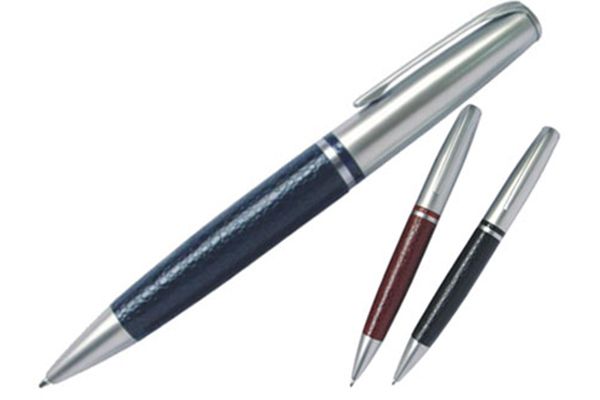 Caneta de metal, personalizada, com detalhe em couro e metal fosco ou brilho, gravação a laser já incluso.