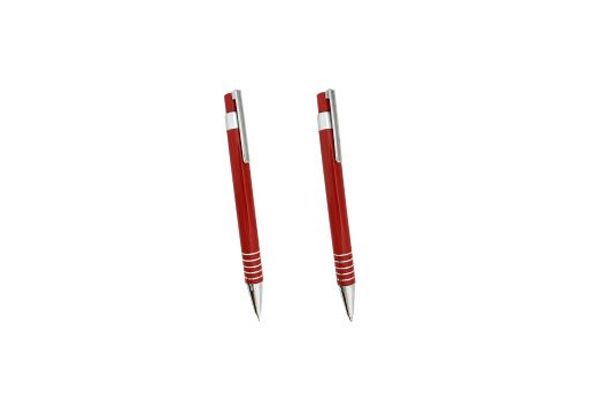 Conjunto com 2 peças, estojo de metal, disponível nas cor: vermelha. Contém: * 1 Caneta esferográfica * 1 Lapiseira de metal cor disponível: vermelha Uma gravação nas já incluso (gravação no estojo opcional)
