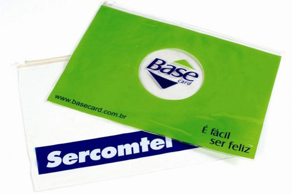 Pasta Zip Zap - 10BRPZDT1... Pasta zip-zap, confeccionada em PVC transparente ou colorido, com espessura 0,20mm, medindo aproximadamente 13x14cm. Inclusa personalização em 01 cor.