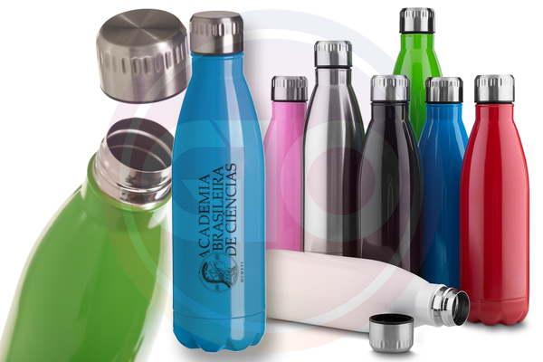 Garrafa Térmica Personalizada, garrafa térmica em aço inox com parede dupla isolada a vácuo, com capacidade de até 550ml. Tampa removível que possibilita o...
