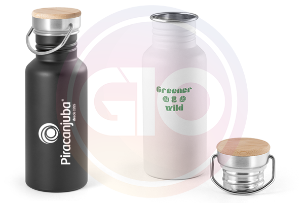 Squeeze em alumínio com acabamento mate ou emborrachado e tampa em bambu. Capacidade até 550 mL. Certificação EU Food Grade. A cor e o resultado da impress...